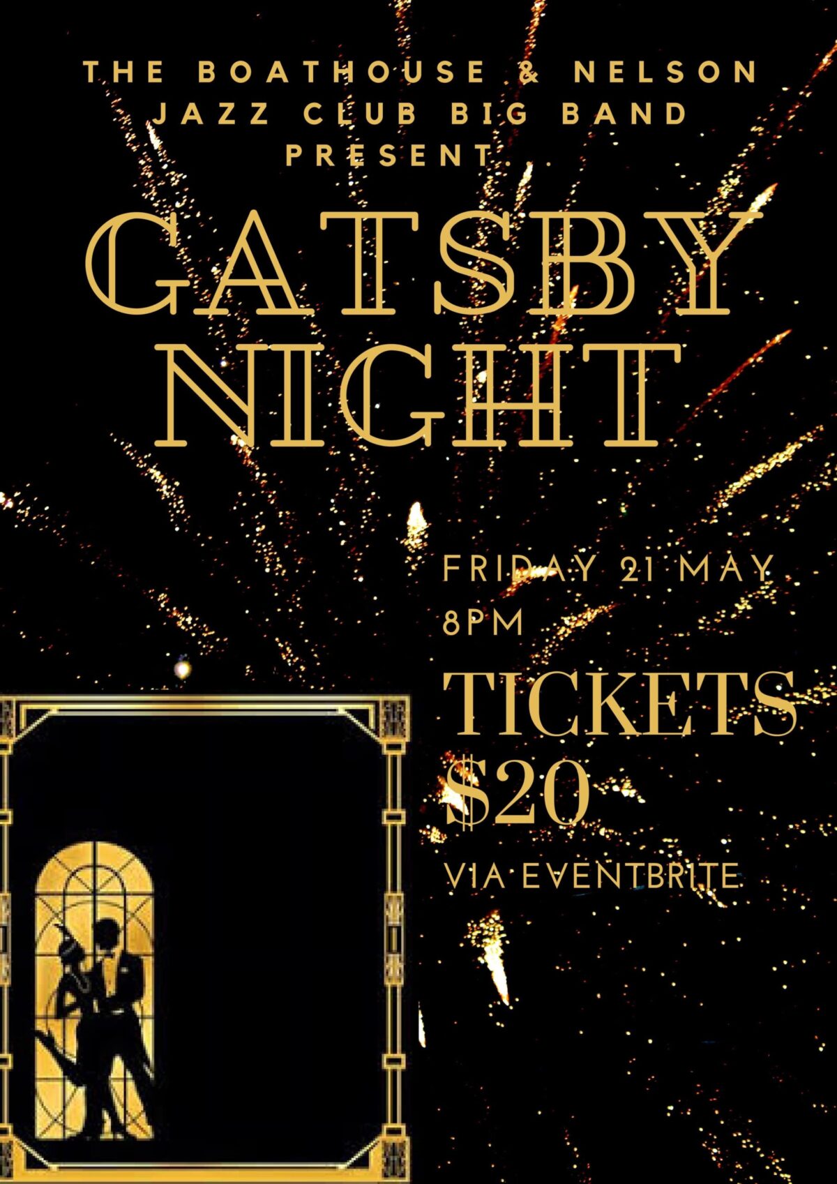 The Boathouse and 'Nelson Jazz Club Big Band' bring you Gatsby Night! We'll be open for dinner as usual and then get ready to dance the night away in your Gatsby finest, see you there. Tickets available to purchase HERE
