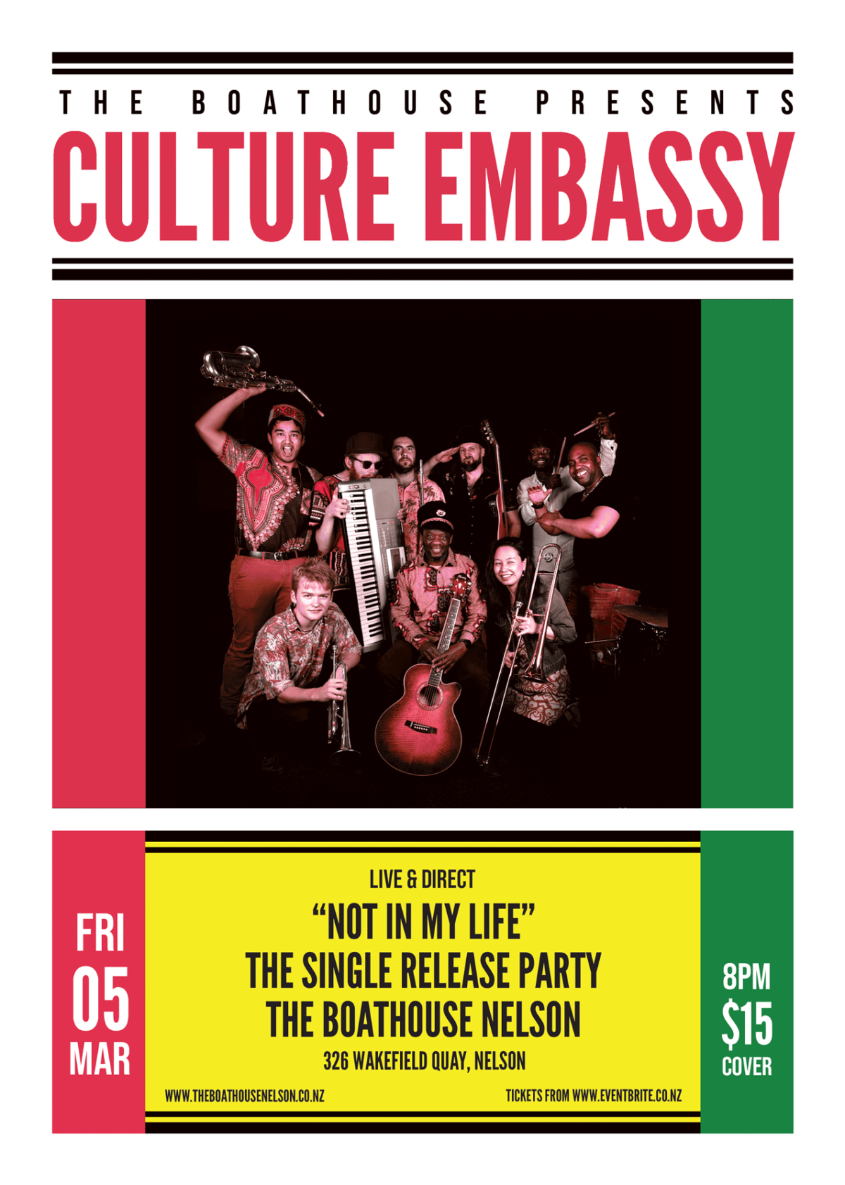 Friday 5th March 8PM-Late Tickets- $15 via Eventbrite or on the door Ras Judah and Culture Embassy band is a Wellington-based, 10-piece international multicultural outfit, hence the name “Culture Embassy”. The band’s musical style is an infusion Afro jazz and roots reggae. Culture Embassy started in Wellington back in early 2013 as a collaborative music project between Ras Judah and friends. Ras Judah hails from Botswana in Southern Africa. He has been playing music professionally for over two decades, has…